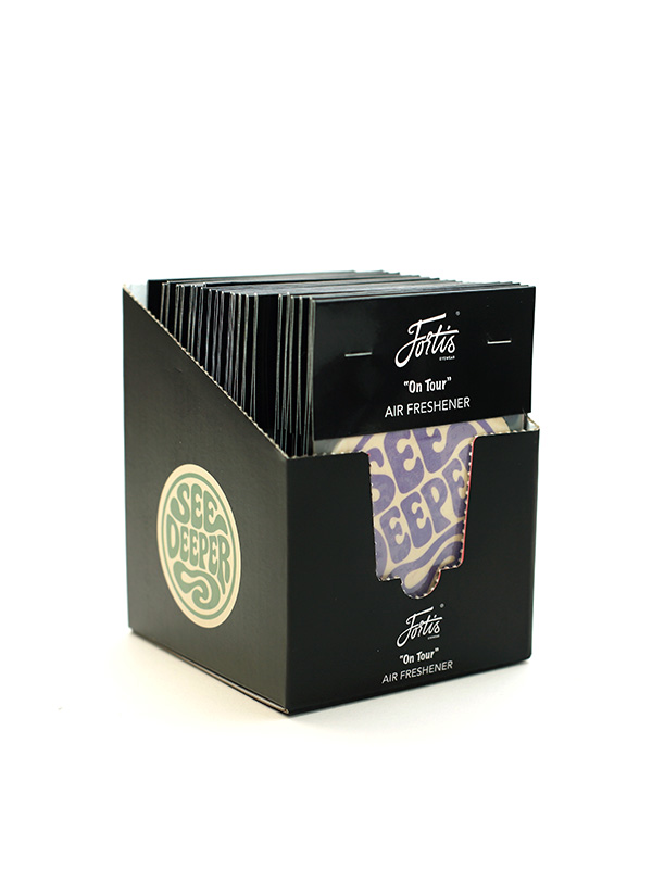 The Fortis “On Tour” Air Freshener brings See Deeper style and a hit of Carpy freshness in four scents built for the road. Available in Vanilla, Bubblegum, Berry and Pine.